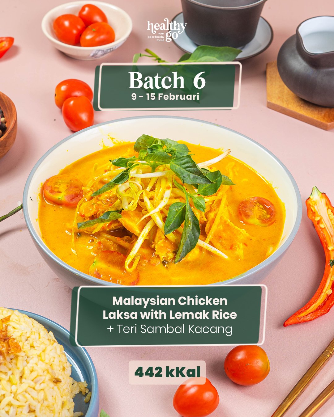 Menu Healthy Go cocok untuk pengidap kolesterol, diabetes, hipertensi, dan penyakit lainnya. Disarankan konsultasi gratis dengan Minthy agar paket catering disesuaikan kebutuhan nutrisi dan kondisi tubuh.