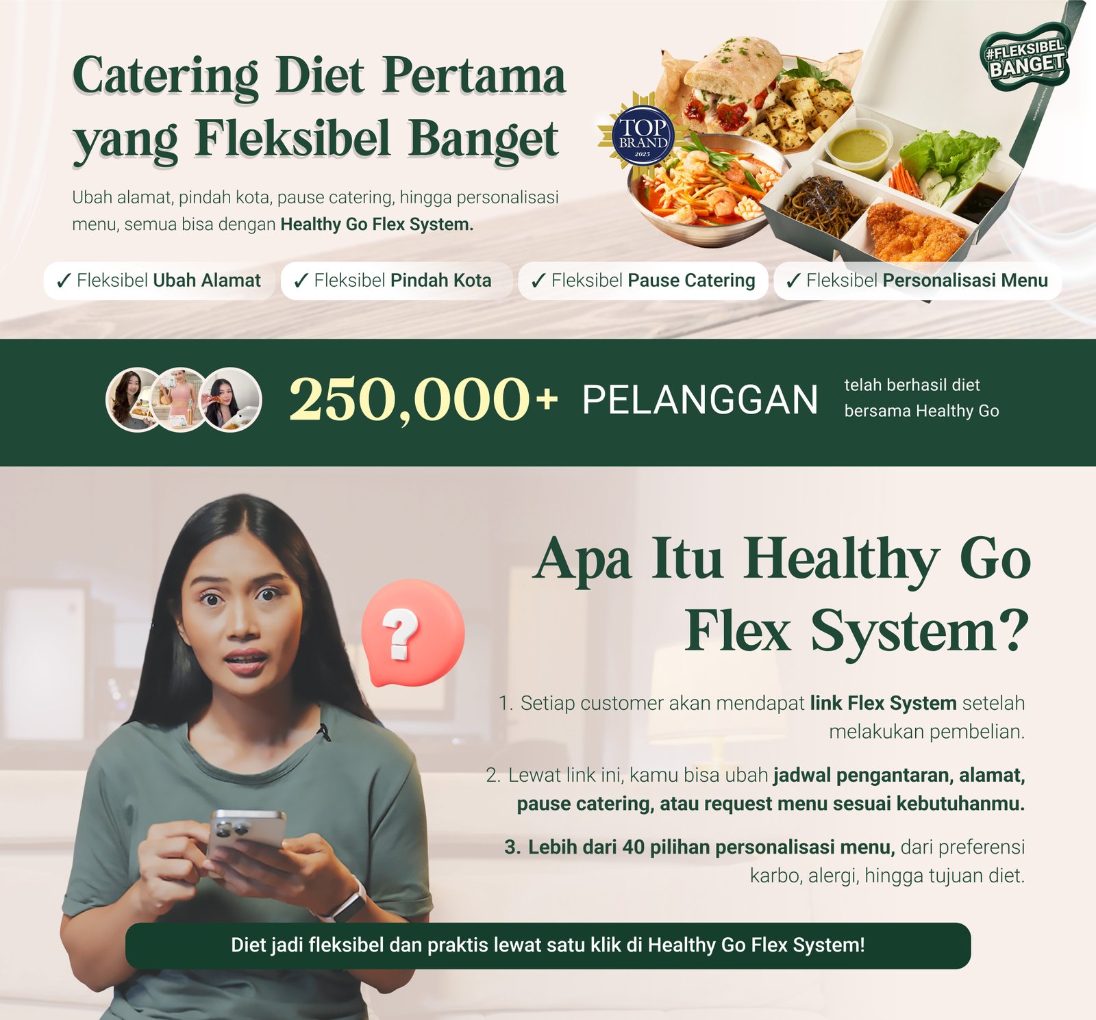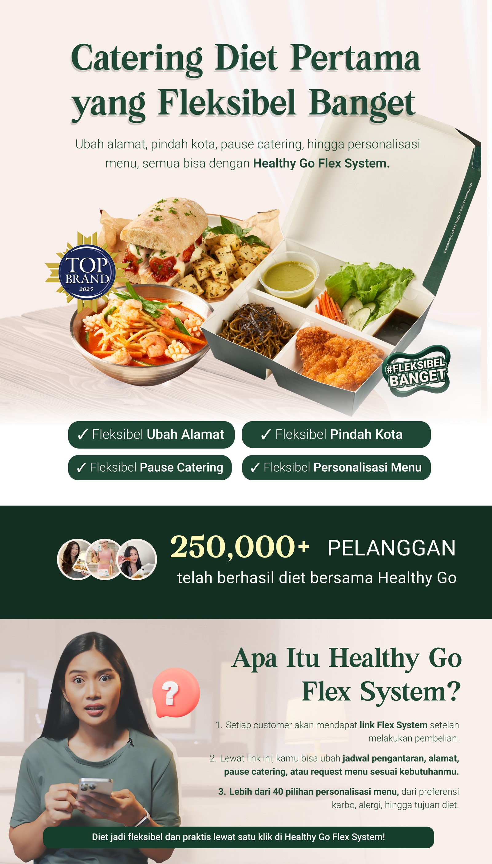 Bisa! Healthy Go menawarkan meal request fleksibel, mulai dari request porsi, protein, karbohidrat, sayuran, hingga add-ons. Konsultasikan target dietmu dengan Nutrisionist kami agar meal plan sesuai tujuanmu.